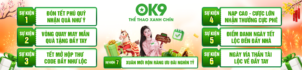 Đặc biệt, không khí tại OK9 sẽ luôn bùng nổ vào các dịp Lễ, Tết hay các giải đấu thể thao hành tinh nhờ những sự kiện khuyến mãi độc quyền. Hàng loạt phần thưởng từ tiền mặt, hiện vật đắt giá đến các chuyến du lịch xa hoa luôn chờ đợi những cược thủ xuất sắc nhất.